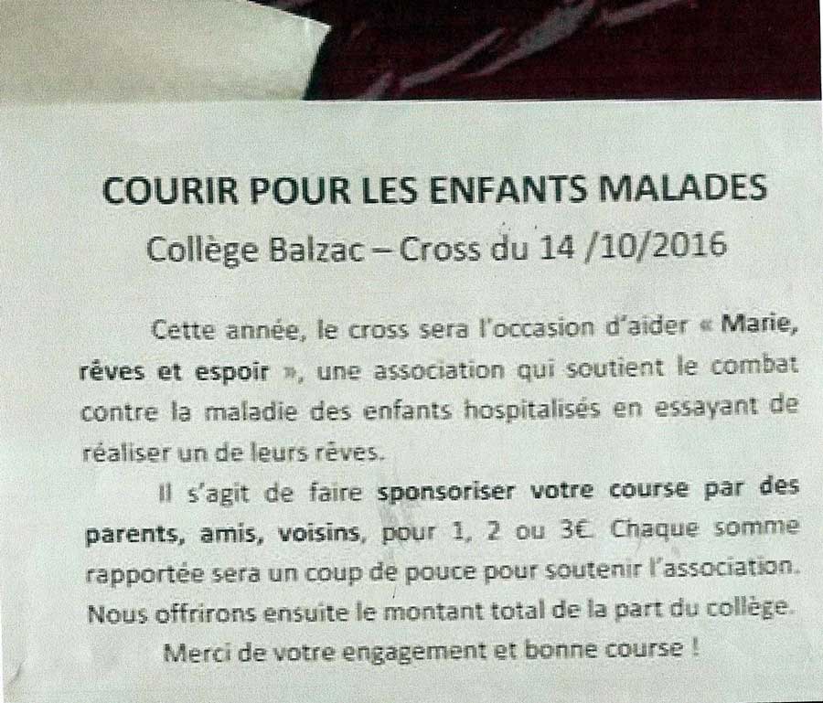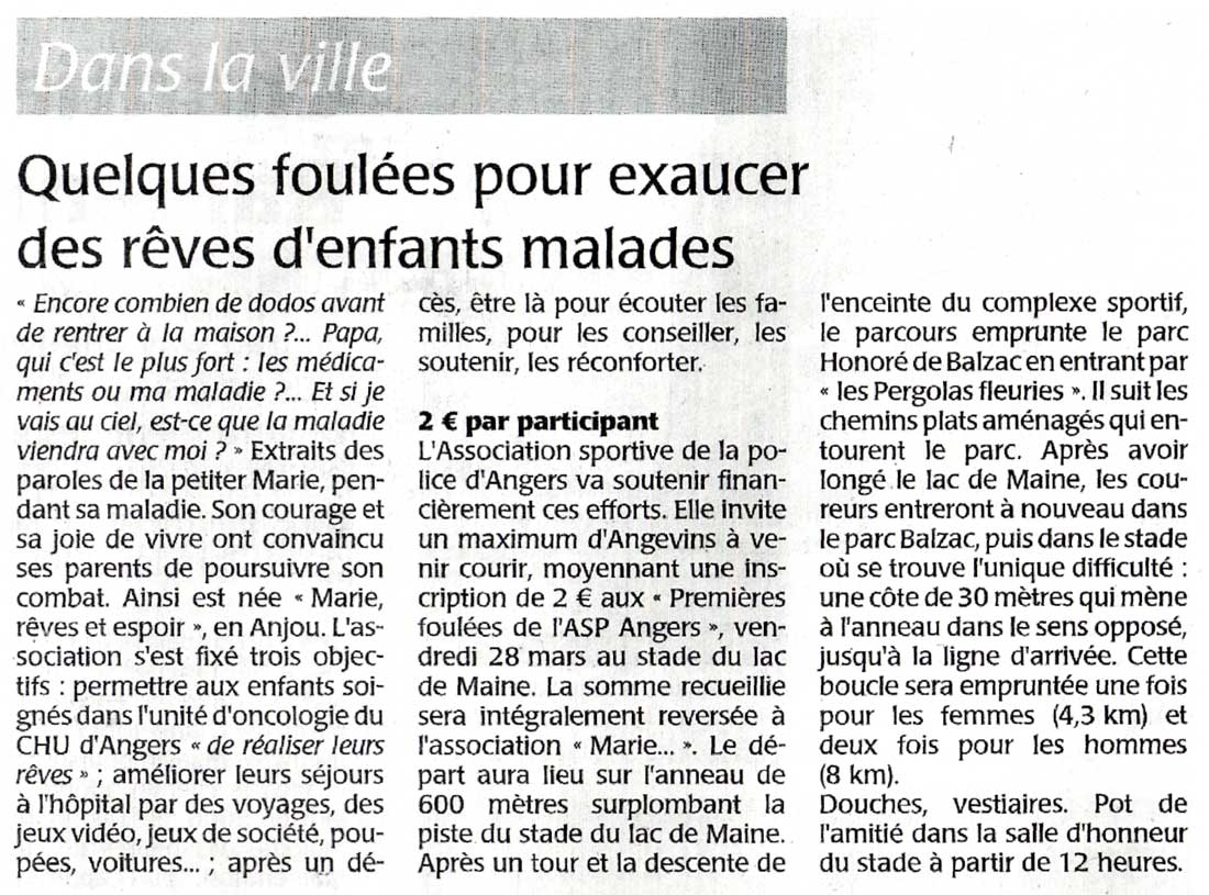 Le 19 Février : Lors des inscriptions, chaque coureur pouvait participer au partenariat « Marie Rêves et Espoir » en versant un…