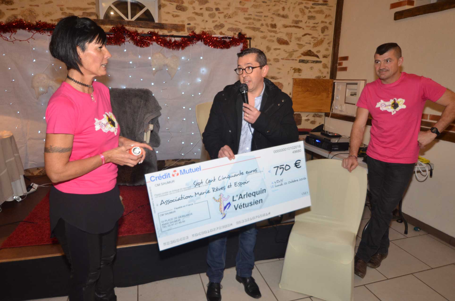 le 17 Décembre : remise de chèque du Théâtre l’Arlequin Vetusiende Vivy. ils nous ont remis un chèque de 750…