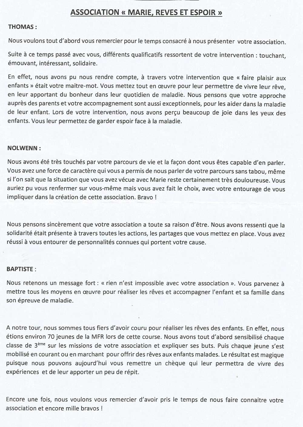 Le 29 Octobre : Nous tenions , tous les membres de Marie rêves et espoir à vous remercier et vous…