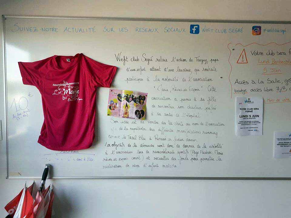 Toute l’année vous pouvez retrouver et acheter des T-shirt de Marie rêves et espoir au Wefit de Segré. Un grand…