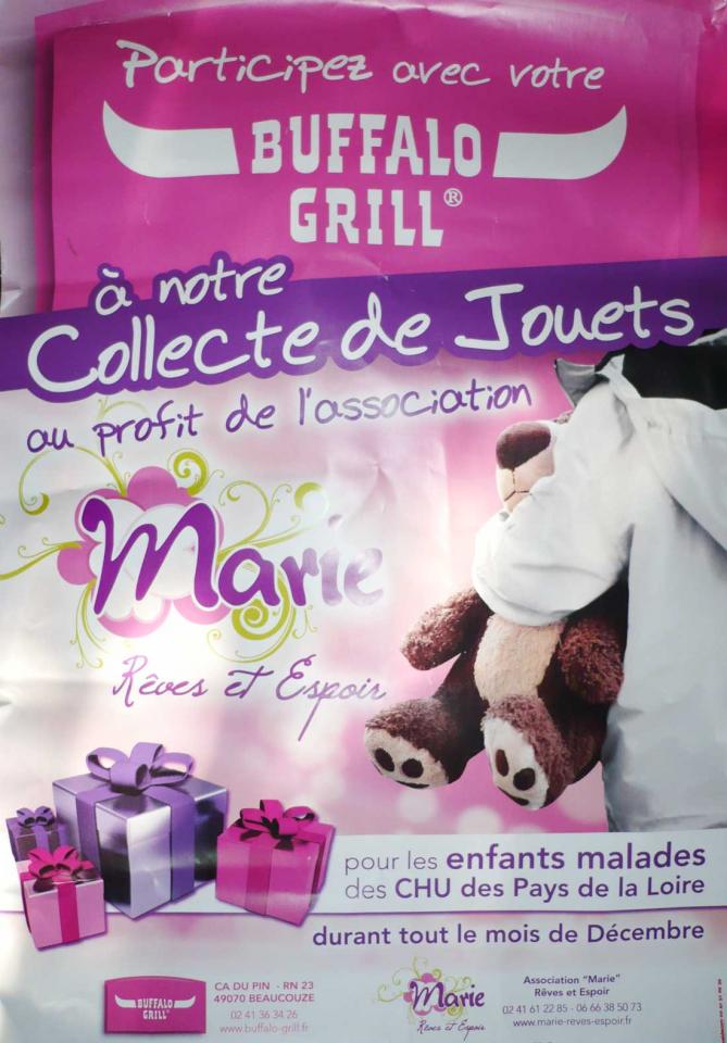 du 20 au 31 decembre : Buffalo Grill beaucouzéLe restaurant Buffalo Grill de Beaucouzé organise une collecte de jouets au…